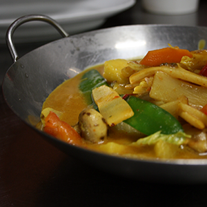 | S11.   | Tom Yam Ente gebr. Garnelen, Huhn & Gemüse mit rotem Curry & Zitronengras | 22,00 € |